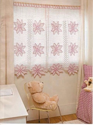 Quiero compartir tres esquemas para realizar unas bellas cortinas espero les guste. Puede ser para su cocina, cuarto o sala. Están tejidas a gancho. De la web.
